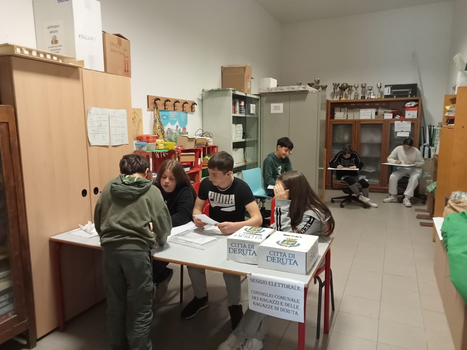 Elezioni del Consiglio Comunale dei ragazzi e delle ragazze di Deruta. Oggi dalle 9.00 alle 12.00, nella scuola secondaria di primo grado di Deruta, si è aperto il seggio per le elezioni del nuovo Consiglio. Hanno votato tutti i ragazzi delle classi prime e seconde. Cinque ragazzi della scuola hanno svolto i ruoli di Presidente di seggio, Segretario e scrutatori. Attendiamo i risultati per sapere chi saranno i 12 consiglieri eletti e il nuovo Sindaco dei ragazzi e delle ragazze di Deruta!